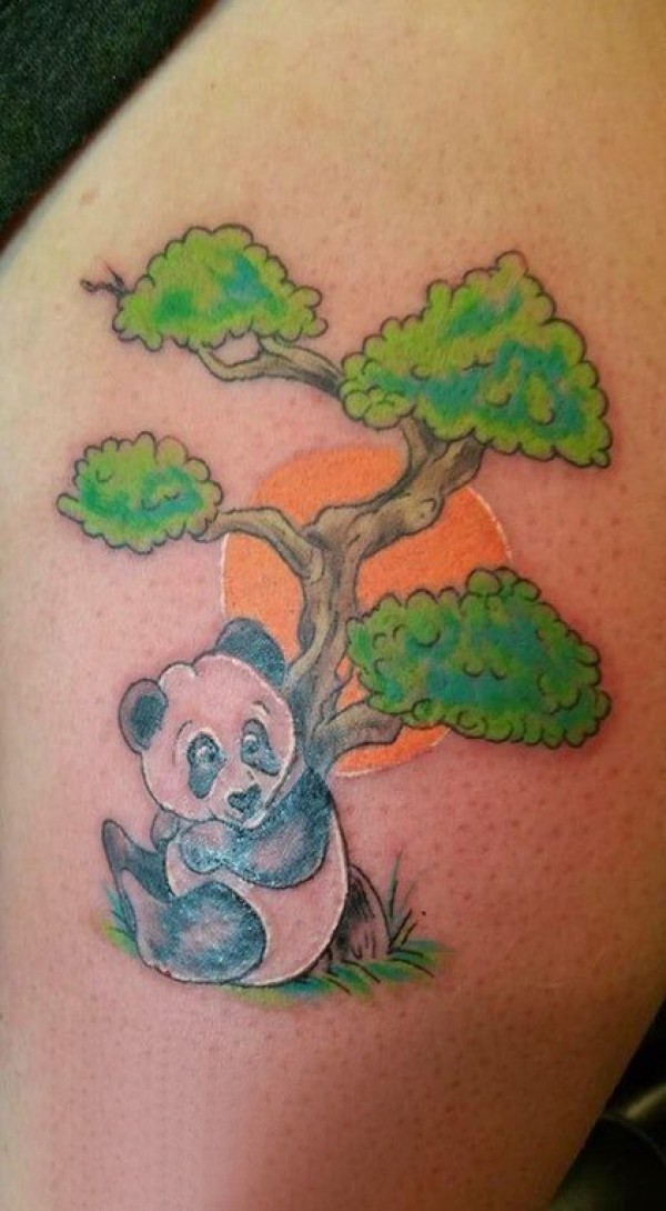 熊猫纹身图 女生大腿上大树和熊猫纹身图片