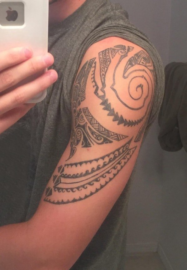 大臂纹身图 男生大臂上黑色的部落图腾纹身图片