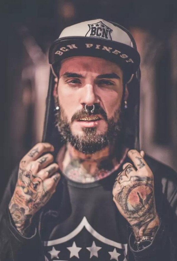 帅哥的唇部纹身