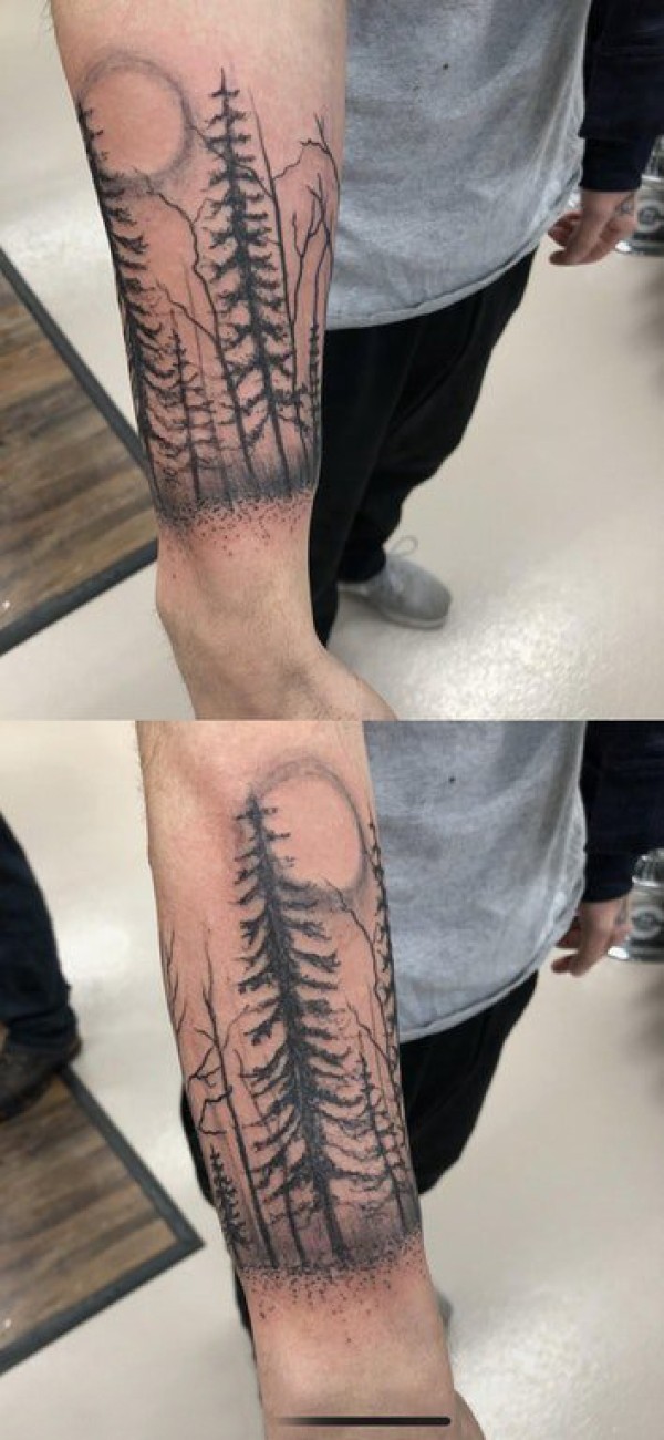 纹身树枝 男生手臂上黑灰色的树纹身图片