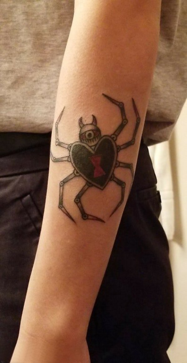 蜘蛛纹身 女生手臂上彩色的蜘蛛纹身图片