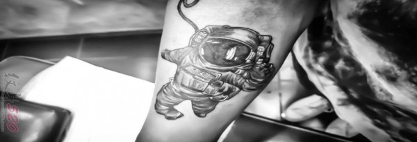 宇航员纹身图案 男生手臂上黑灰色的宇航员纹身图片