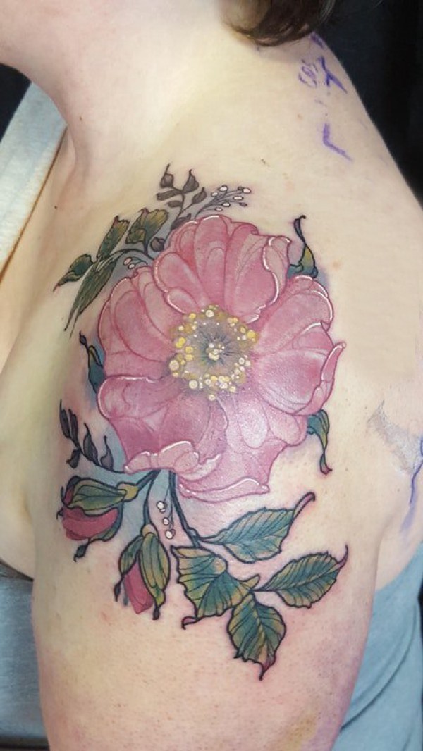纹身图案花朵 男生肩部唯美的花朵纹身图片