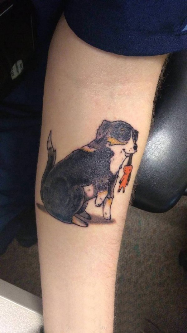 百乐动物纹身 女生手臂上娃娃和小狗纹身图片