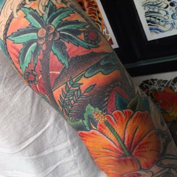 棕榈树纹身图案 绿意盎然的棕榈树纹身图案