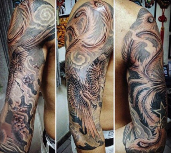 满背凤凰和鲤鱼纹身图案