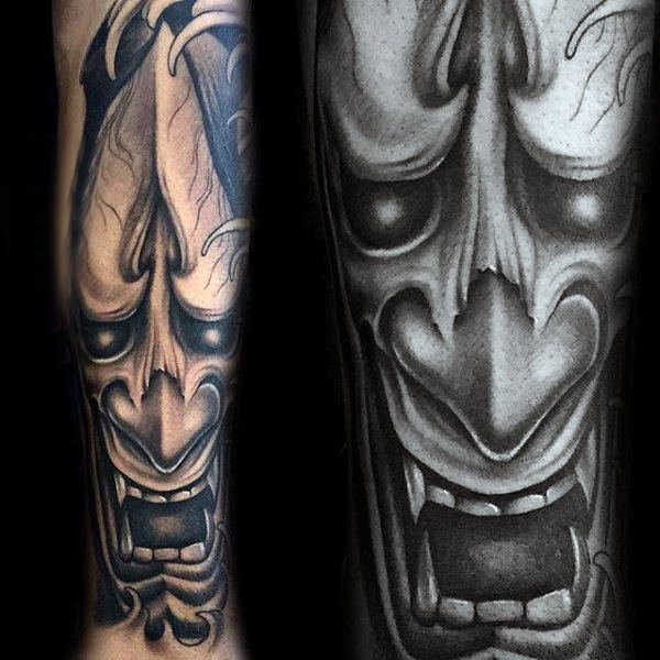 般若面具纹身 多款色调暗沉的般若面具纹身图案