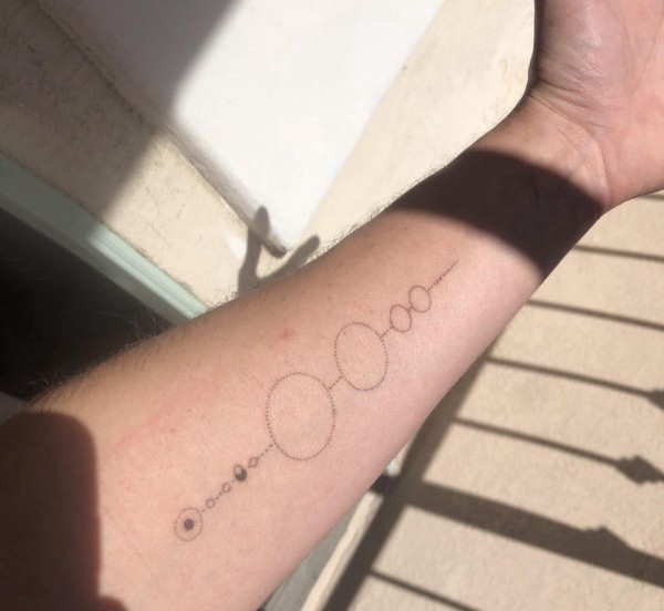 极简线条纹身 男生手臂上黑色的圆形纹身图片
