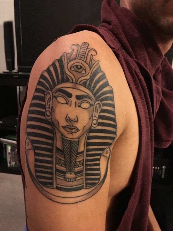 法老王纹身 男生大臂上黑色的埃及法老纹身图片