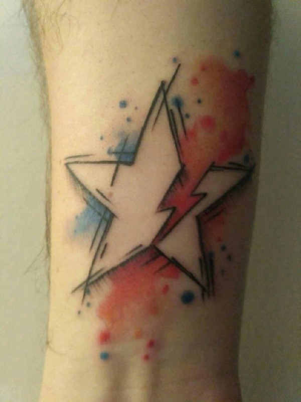 大五角星纹身 男生手臂上彩色的五角星纹身图片