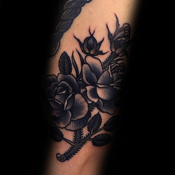 欧美玫瑰纹身 男生手臂上花朵纹身图片