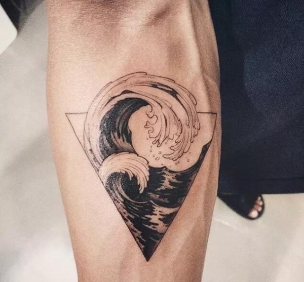 几何点刺小清新个性对称的海浪纹身图案手稿