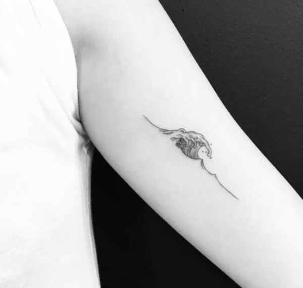 几何点刺小清新个性对称的海浪纹身图案手稿