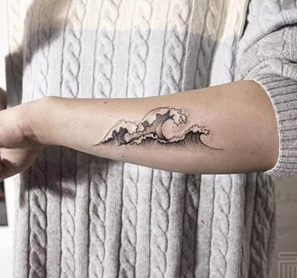 几何点刺小清新个性对称的海浪纹身图案手稿