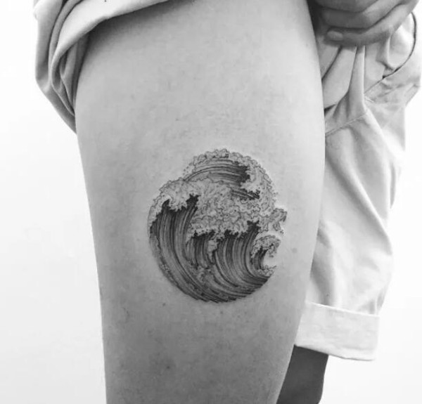几何点刺小清新个性对称的海浪纹身图案手稿