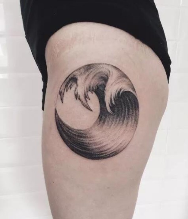 几何点刺小清新个性对称的海浪纹身图案手稿