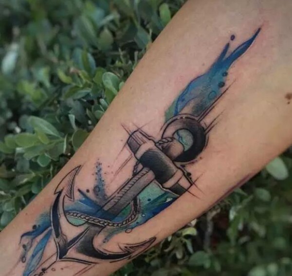船锚纹身_9张男生比较喜欢的小清新船锚纹身图片作品