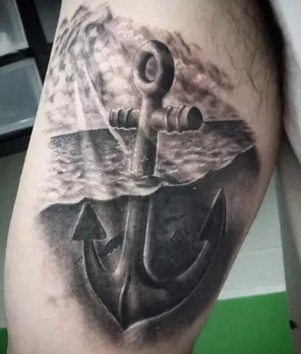 男生纹身船锚 简单而又时尚的船锚纹身图案