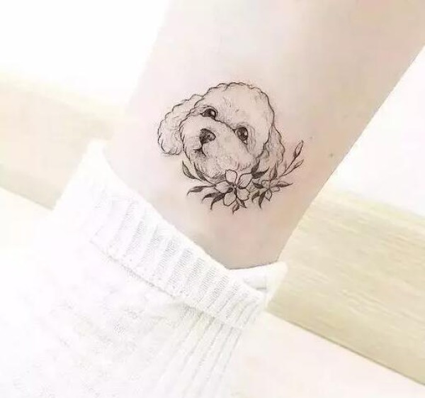 大腿纹身图女 女生大腿上彩色的小狗纹身图片