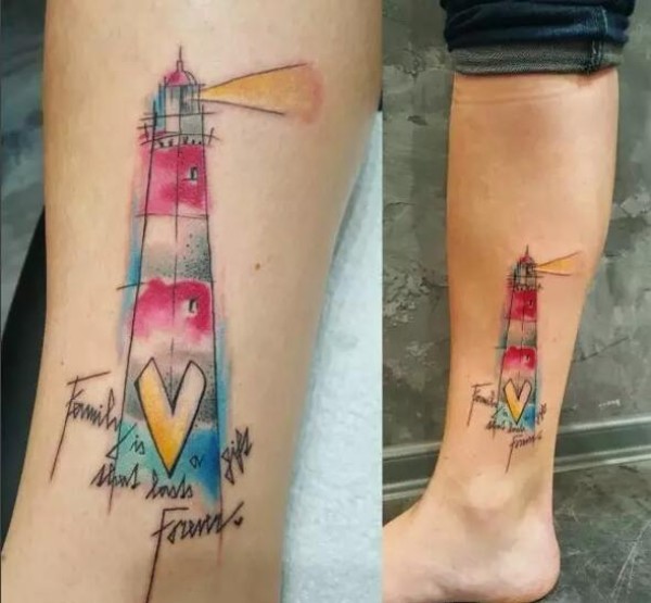 彩色灯塔玫瑰花纹身图片由纹身图吧提供