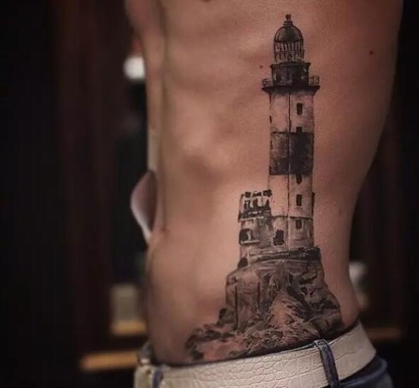 彩色灯塔玫瑰花纹身图片由纹身图吧提供