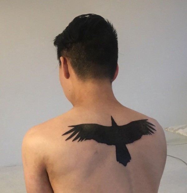 动物纹身轮廓 男生后背上黑色的老鹰纹身图片