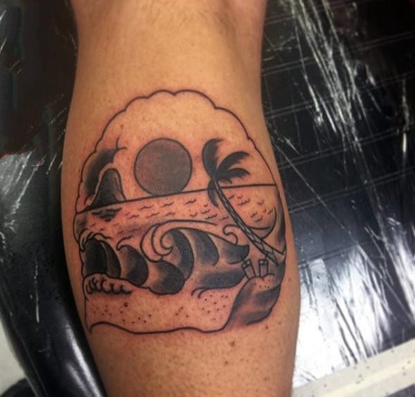 棕榈树纹身图案 屹立景色中的棕榈树纹身图案