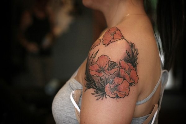 罂粟花纹身图片 鲜丽娇媚的罂粟花纹身图案