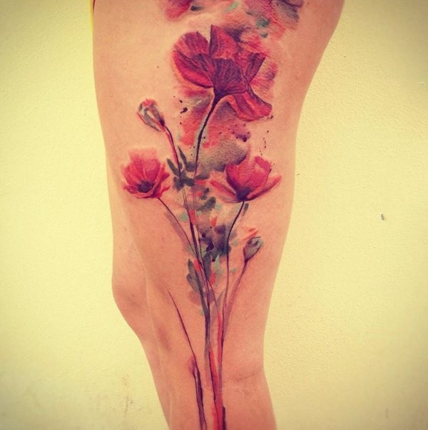 罂粟花纹身图--几张红色艳丽的唯美罂粟花纹身图案作品