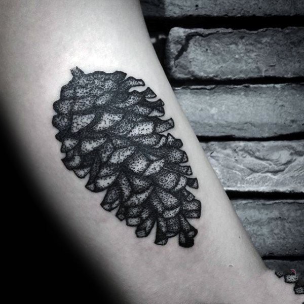 手臂纹身素材 女生手臂上黑色的松果纹身图片