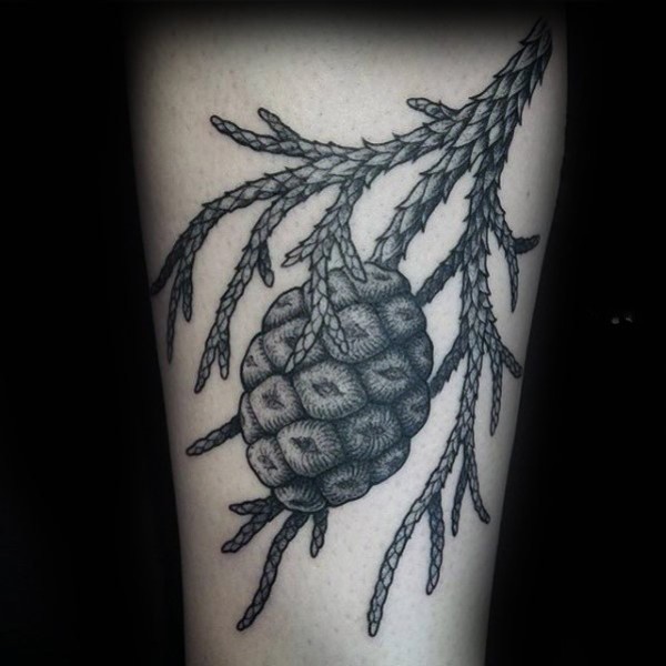 手臂纹身素材 女生手臂上黑色的松果纹身图片