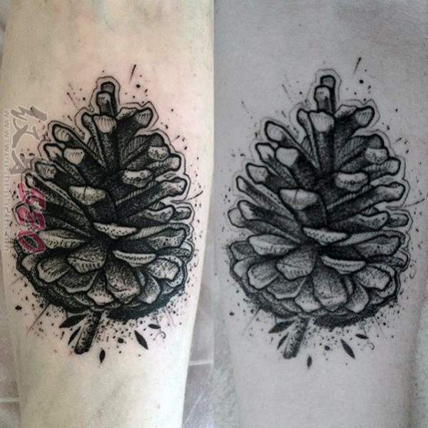 手臂纹身素材 女生手臂上黑色的松果纹身图片