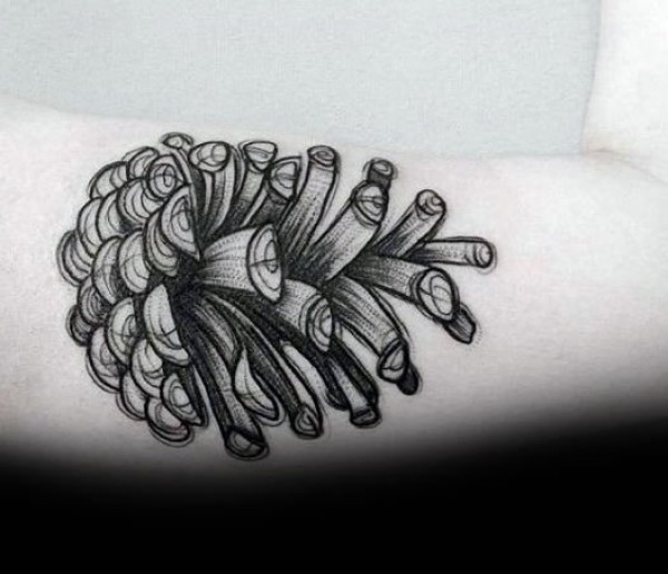 手臂纹身素材 女生手臂上黑色的松果纹身图片