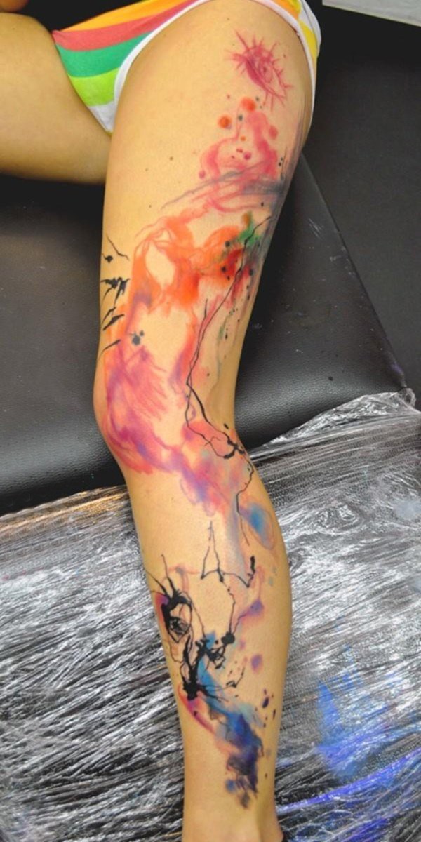 花腿纹身--一组大黑腿纹身图案作品欣赏