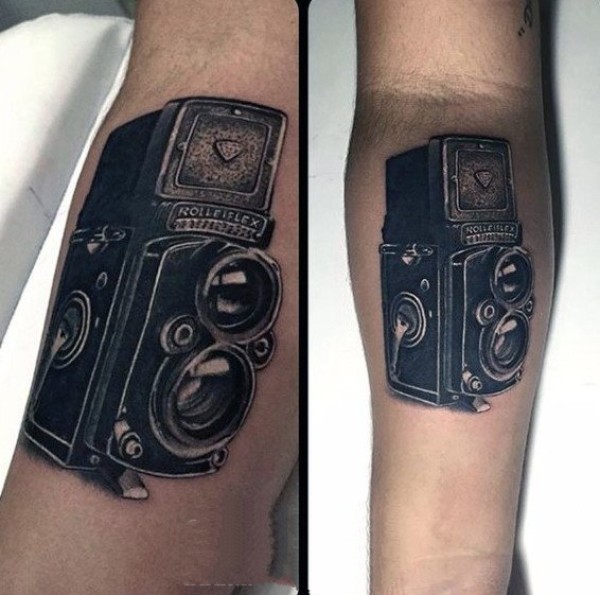 手指上纹身小图案 女生手臂上黑灰色的相机纹身图片