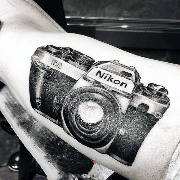 手指上纹身小图案 女生手臂上黑灰色的相机纹身图片