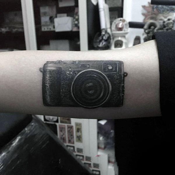 手指上纹身小图案 女生手臂上黑灰色的相机纹身图片