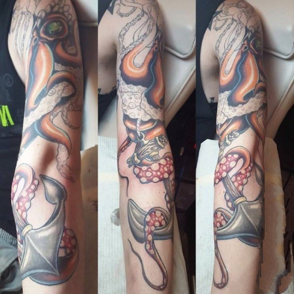 章鱼纹身图案 多款身姿柔软的章鱼纹身图案
