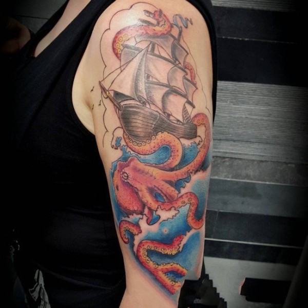 章鱼纹身图案 多款身姿柔软的章鱼纹身图案