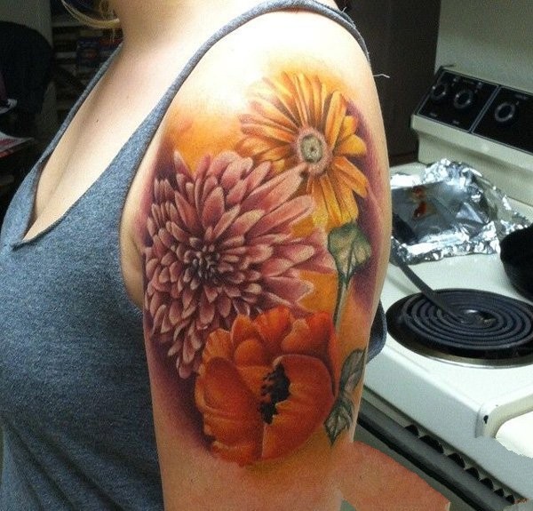 纹身菊花图案 绚丽绽放的菊花纹身图案