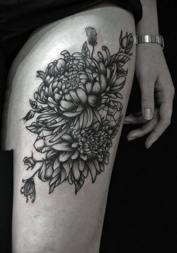 纹身菊花图案 绚丽绽放的菊花纹身图案