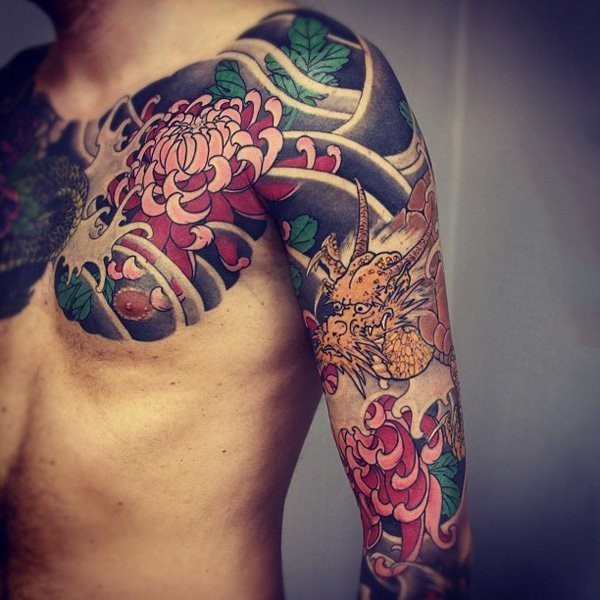 纹身菊花图案 绚丽绽放的菊花纹身图案