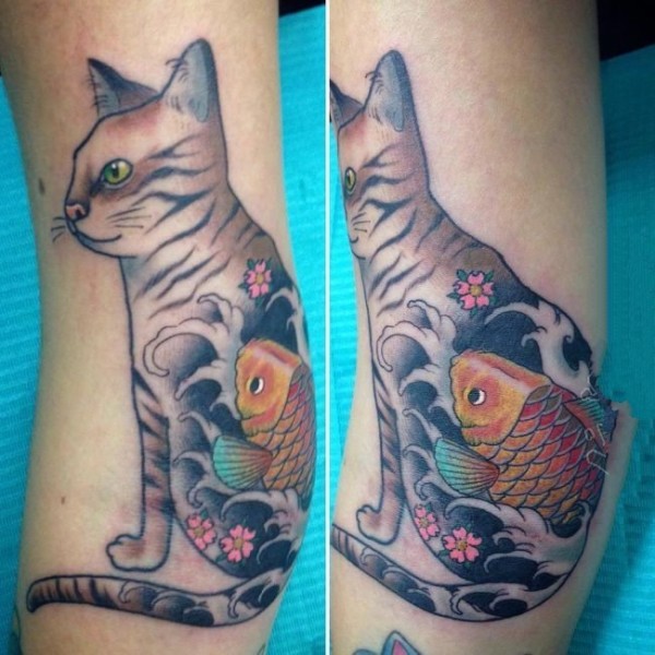 手背猫纹身:9张大花手背的猫纹身图案赏析