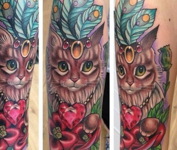 手背猫纹身:9张大花手背的猫纹身图案赏析