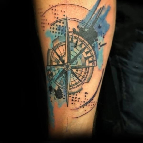 纹身指南针 水彩与线条结合的指南针纹身图案