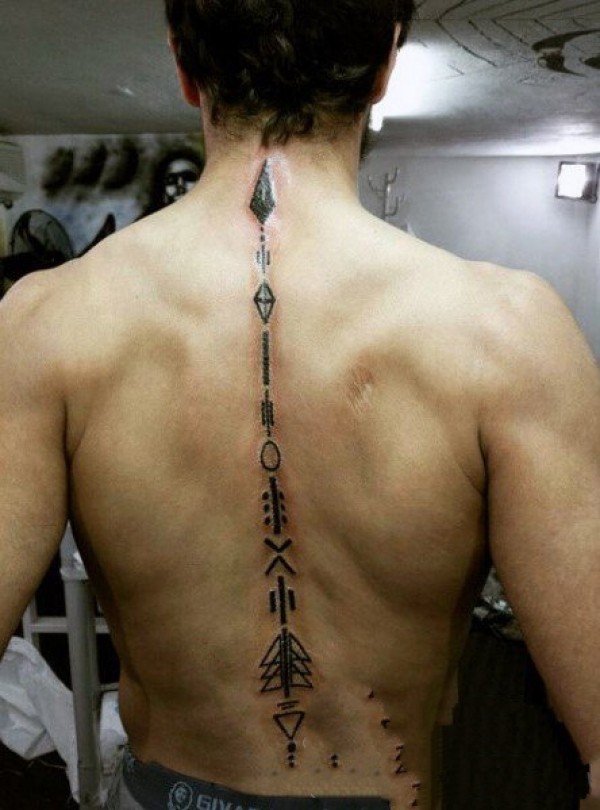 男生脊柱纹身 多款后背上的脊柱纹身图案