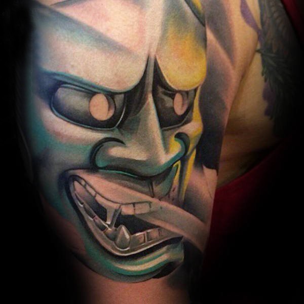 日本鬼面具纹身 恐怖骇人的日本鬼面具纹身图案