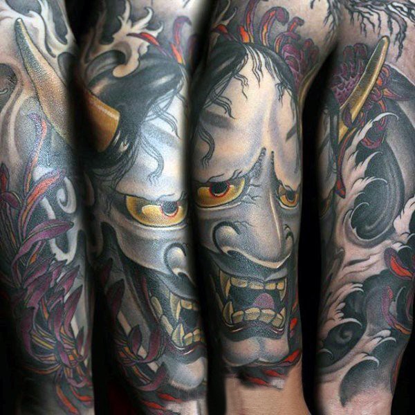 日本鬼面具纹身 恐怖骇人的日本鬼面具纹身图案