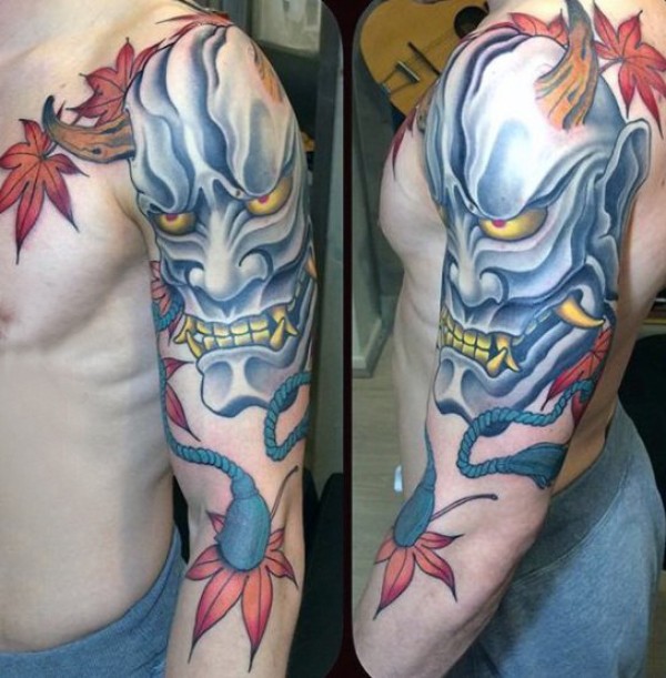 日本鬼面具纹身 恐怖骇人的日本鬼面具纹身图案