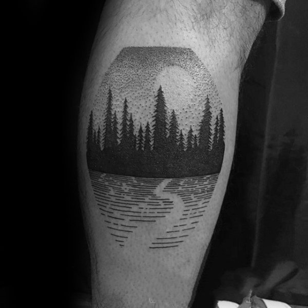 纹身小树 黑灰色调的小树纹身图案